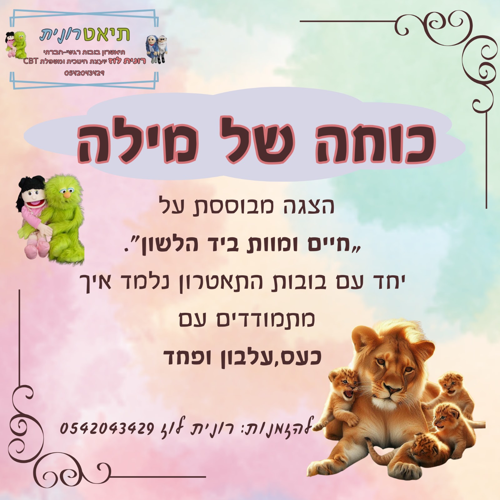 • סדנאות בובהתרפיה להורים לילדי גנים ובתי ספר
